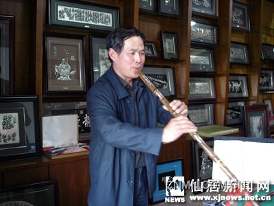 春风阵阵,在优美的笛声中开始了对徐海琪的采访。在采访中逐渐发现,徐海琪是一个勤钻研又专一的人,用他自己的话说:学任何一样东西,不学则已,要学就一定要学好。比如石雕、银雕、书法、笛子、萧、葫芦丝。
