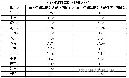 从企业分布看,此次淘汰落后产能任务分布于湖南、河南、重庆、湖北、江西、陕西和辽宁等13个地区。
