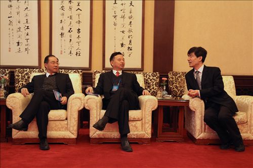 本报副社长兼副总编辑 张春甫与张克利、陶星虎会前交谈