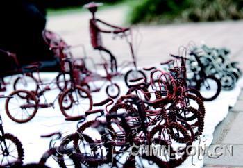 “老先生很保守,别说收徒弟,就是你从旁边看上一会儿,他都要停下手,生怕你偷学。”杨列灏说,当时他在白城一呆就是一周,每天都去老先生那儿磨。最终,老先生看他诚心想学这门手艺,便收了他1000元钱,给他演示了一遍编织自行车的过程。“当时也没看清楚,我自己尝试着做了四五十个,才慢慢做出自行车的样子。”
