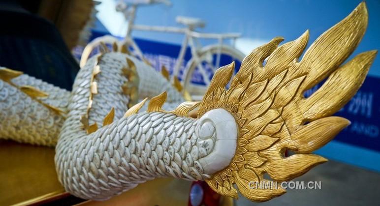 作品是在传统的牙雕工艺手法上,采用牙雕技艺中最高难度的平刻、立雕、浮雕、圆雕、镶嵌及镂空雕。车内饰从方向盘、波棍、面板都为精雕细刻而成。最令人惊奇的是车身被一条由数千片羽鳞拼接而成的腾龙覆盖,鳞片上刻有《金刚经》经文,并刻有3999形态各异的龙图。此座驾分别在前车盖、倒后镜、车门及飘翼、排气管等部位雕有共计999条蟠龙,首尾相连,盘根错节。全车共用3万牦牛腿骨打磨镶嵌,并贴有999纯金黄金甲1999片,龙爪刚好抓住四个贴有9999纯金的轮子。