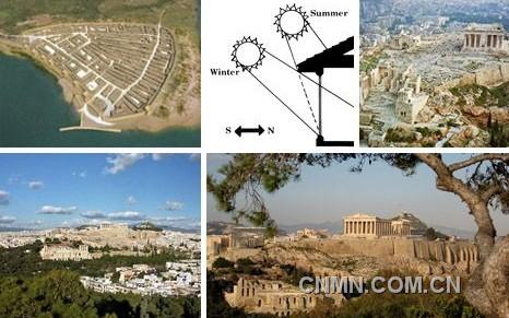 就像当今西方世界一样,古希腊人燃料短缺,所以他们开始思考怎样设计建筑以最大限度的在冬季获取并保存热量。他们开始为整座城市和其中的建筑物定向,这样朝南向的房屋 能在一年最冷的时候捕捉阳光。罗马人最终还进一步改进房屋,给窗户加装玻璃以保持聚光所得到的热量。
