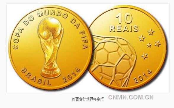 为铭记64年后巴西再次举办世界足坛的这一顶级赛事,巴西于2014年初发行了巴西世界杯纪念币一套,该套纪念币共9枚,其中金币1枚、银币2枚、铜镍合金币6枚,均为巴西法定货币。