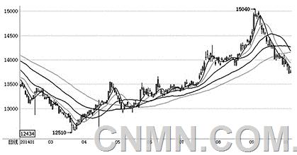 2014年以来沪铝价格走势见图4。从图4可见,2014年三季度,沪铝价格出现强势回升,从7月初的13360元/吨上涨至9月初的15040元/吨,出现年内新高,涨幅为2.3%。但在价格反弹过程中,伴随着部分关停产能的复产及大修槽的重新启动,供需基本面没有根本性改善的情况下,铝价回升动力不足,三季度下旬跌至13755元/吨。