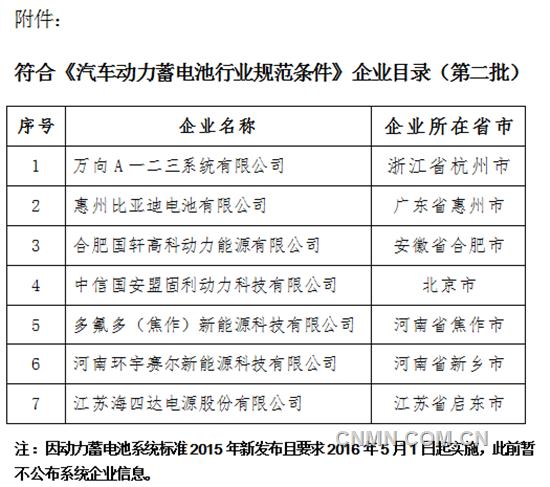 12月24日工业和信息化部发表公示,公布了符合《汽车动力蓄电池行业规范条件》的企业目录并进行公示。按照《汽车动力蓄电池行业规范条件》要求,工业和信息化部装备工业司组织专家对网上提交材料并经地方工业和信息化主管部门初审合格的企业进行了技术评审,并对有关企业补充材料进行了进一步审查确认。