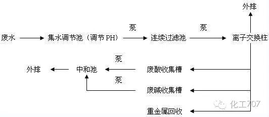 用离子交换树脂把废水中的重金属离子交换出来,从而除去重金属离子。不过,离子交换树脂价格昂贵,其再生费用也比较高,所以,在废水处理中使用很少。但对于少量有回收价值的有毒金属来说是个不错的方法。