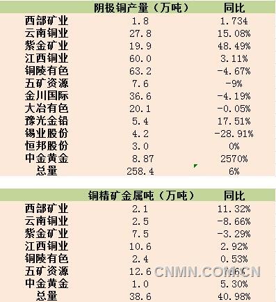 据中报数据显示,上半年国内12家上市铜冶炼企业的阴极铜总产量为258.4万吨,同比增速为6%。