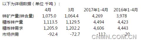 1-4月全球锌市供应短缺112,000吨,上年同期为短缺20,000吨。