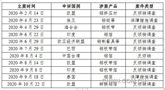 表3 自疫情以来中国铝材行业遭遇的贸易救济案件