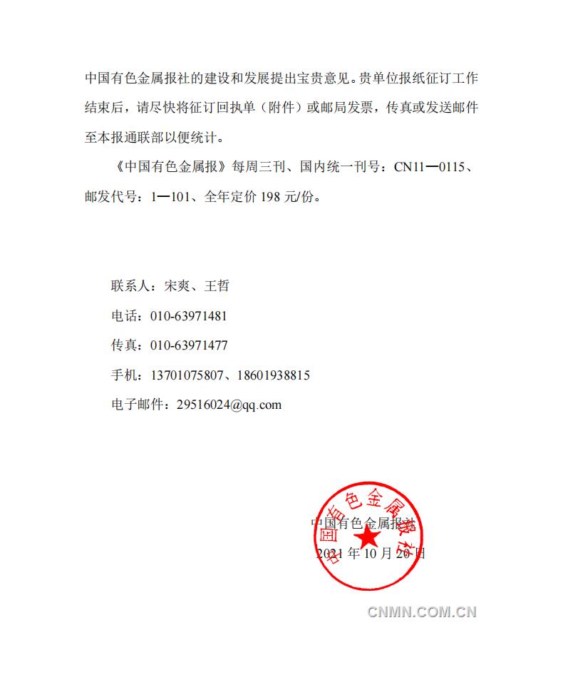 凡注明文章来源为“中国有色金属报”或 “中国有色网”的文章,均为中国有色网原创或者是合作机构授权同意发布的文章。