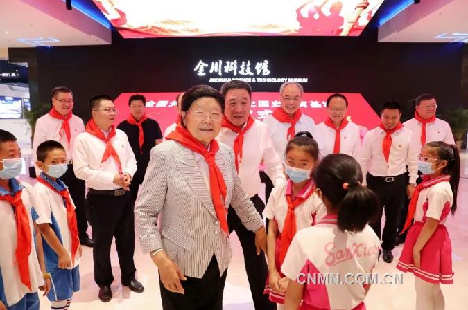 顾秀莲和刘立军共同为金川科技馆“全国关心下一代党史国史教育基地”揭牌。仪式前,少先队员为嘉宾敬献红领巾。